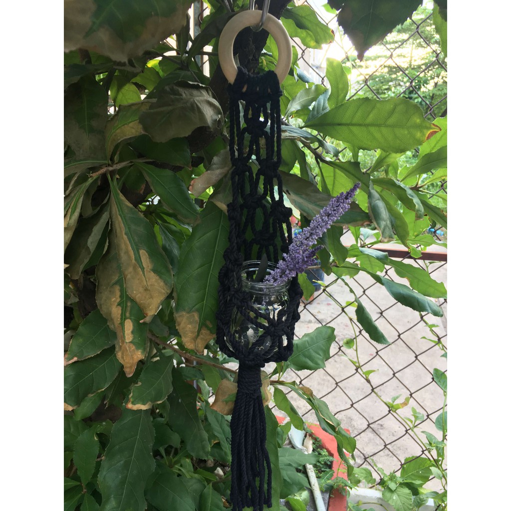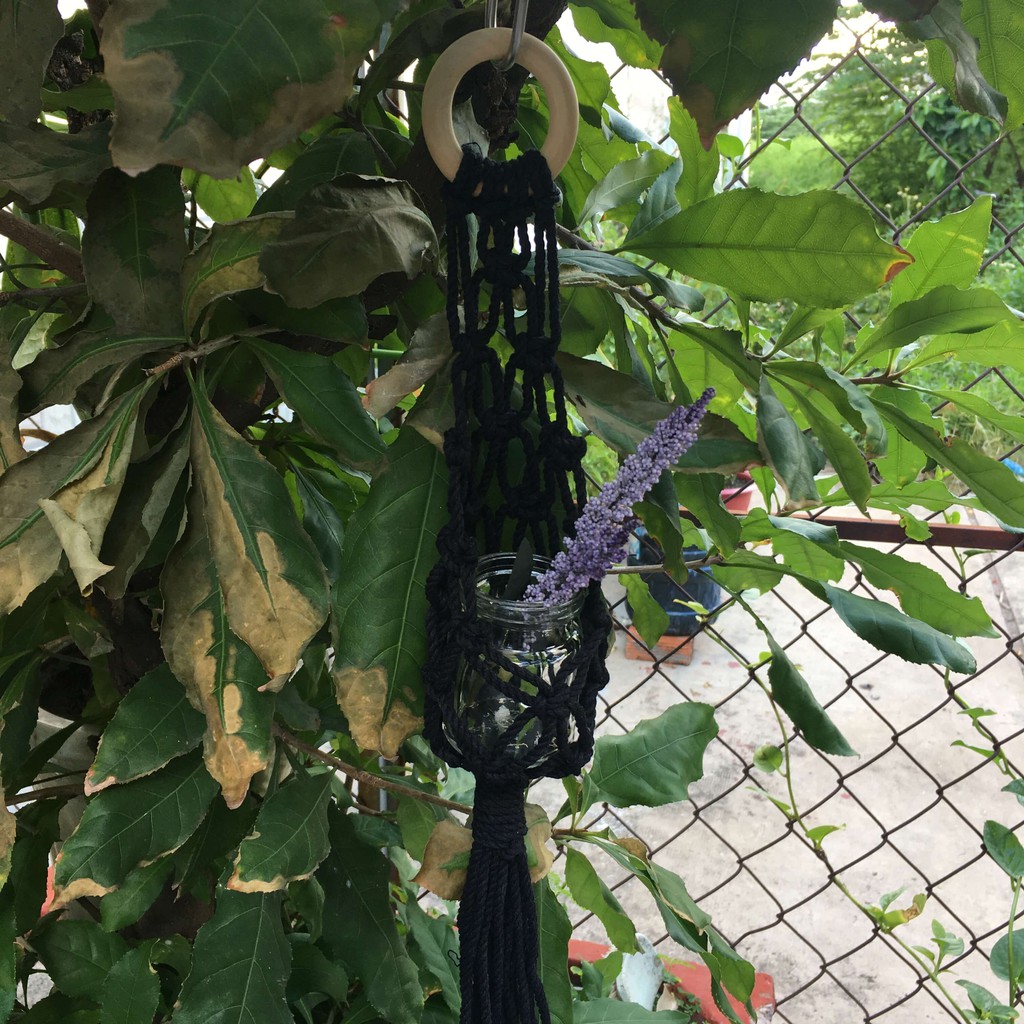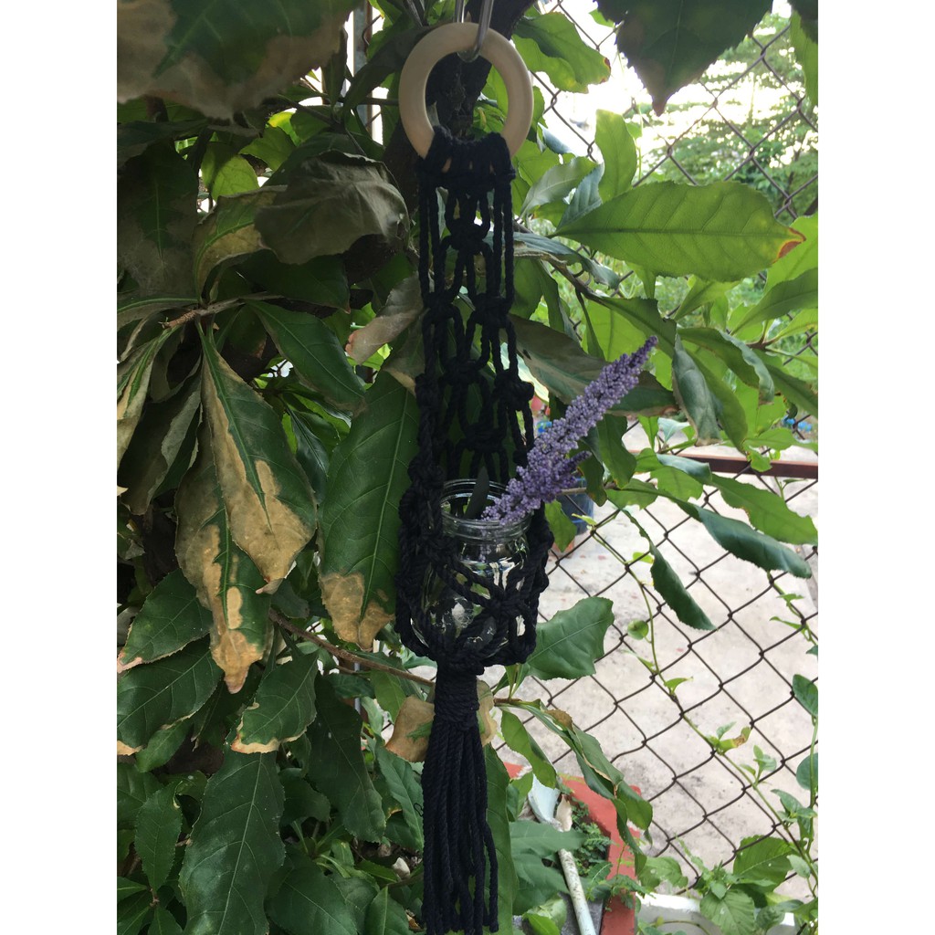 Giỏ treo chậu cây macrame mini, cỡ nhỏ để treo cây không khí hoặc trang trí làm vườn | Macrame plant hangingSản phẩm được làm từ sợi cotton 90% màu đen