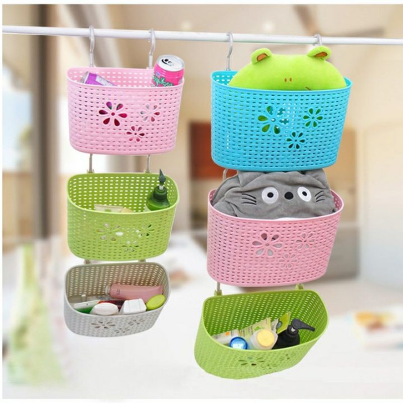 Nhà bếp, phòng tắm, nhà vệ sinh luôn có nhiều vật dụng nhỏ cần được giữ cho khô ráo để đảm bảo vệ sinh như giẻ rửa bát, bông tắm, xà bông, dao cạo râu, bút, vật dụng nhỏ khác… làm thế nào để những vật dụng này luôn trong tầm với để có thể sử dụng.Giỏ được thiết kế đẹp mắt và có thể treo vào nhau tạo thanh nhiều tầng để sử dụng tiết kiệm diện tích.