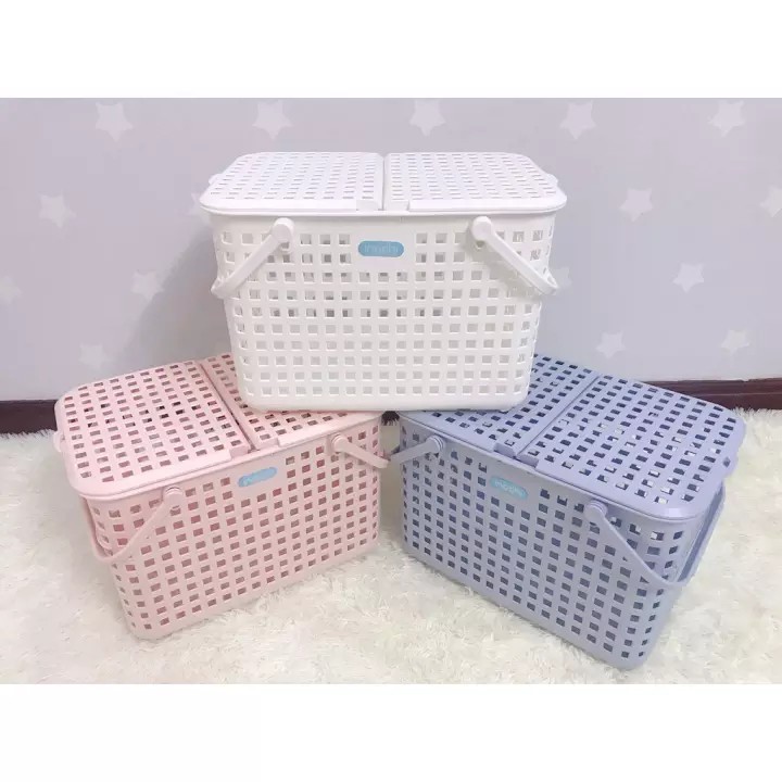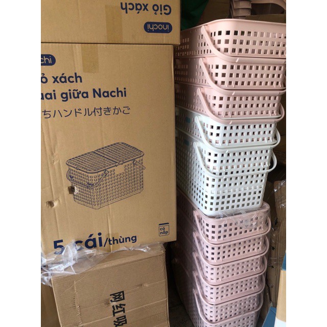 Giỏ xách quai nắp đậy Nachi hàng xuất Nhật Bản chính hãng nhựa PP nguyên sinh an toàn sức khỏeMàu sắc: Trắng, Nâu nhạt, xanh hồng (shop giao màu ngẫu nhiên)