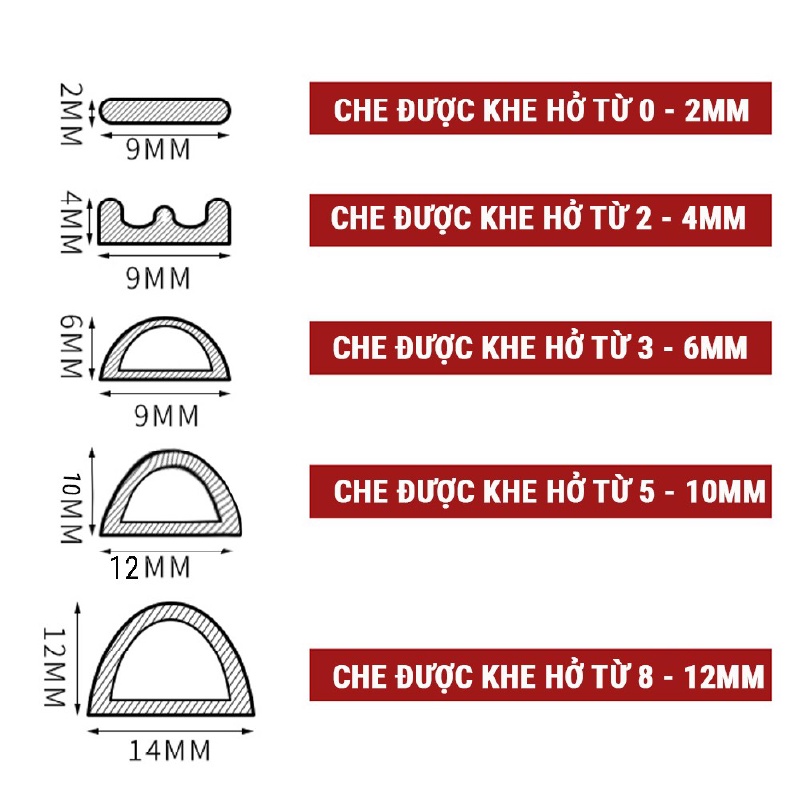 - Ron Chữ D dày 6mm : Dùng Cho Khe Hở Từ 3-6mm