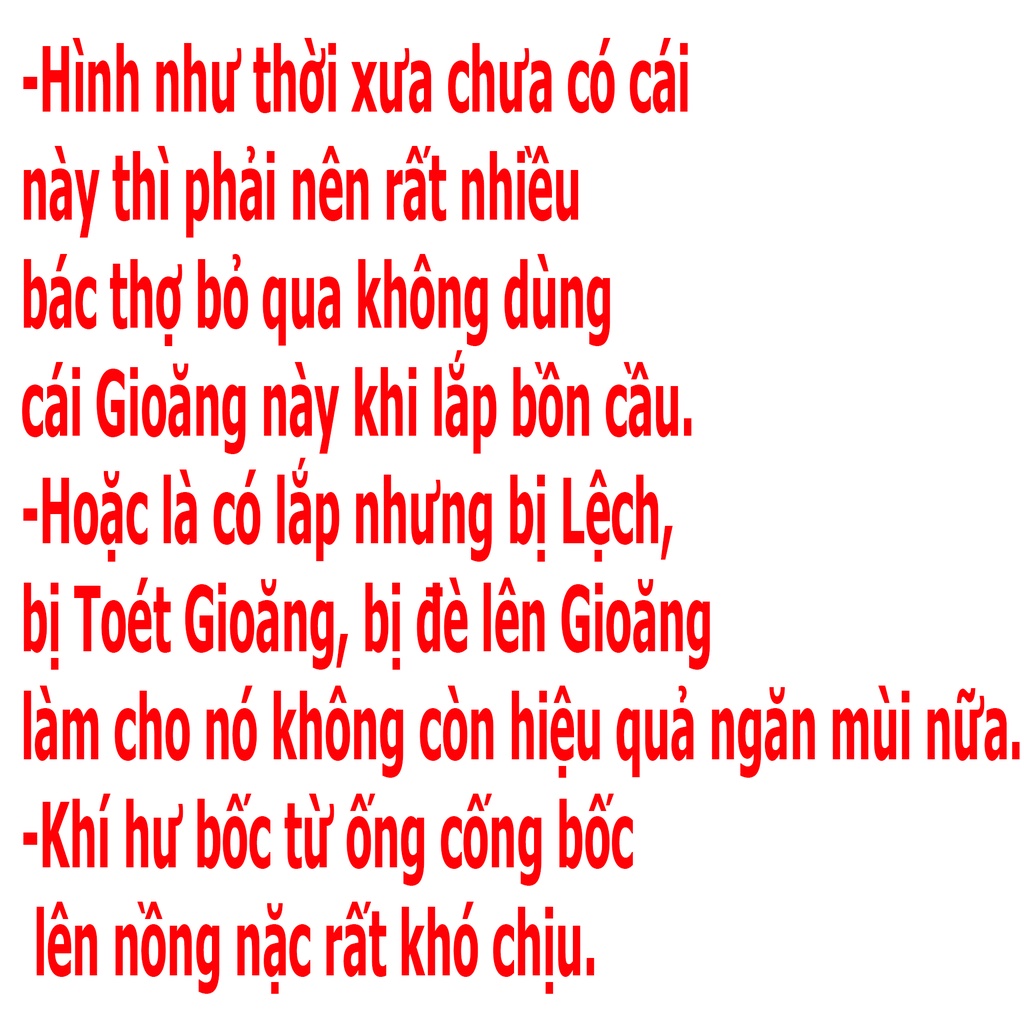 -Hoặc là có lắp nhưng bị Lệch, bị Toét Gioăng, bị đè lên Gioăng làm cho nó không còn hiệu quả ngăn mùi nữa. Khí hư bốc từ ống cống bốc lên nồng nặc rất khó chịu.