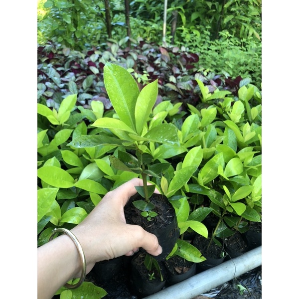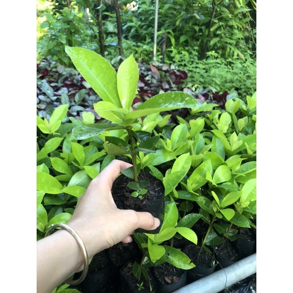 cao trên 15cm, trong bầu đất, rễ mạnh, về có thể sang chậu hoặc trồng ra đất liền (như hình)