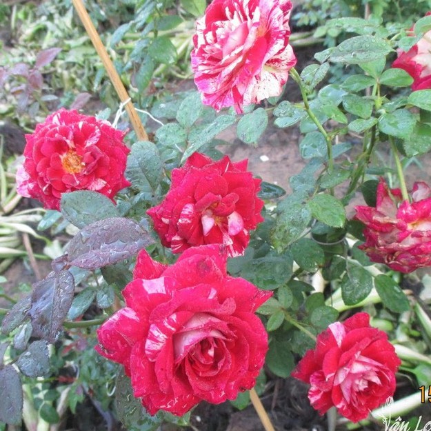 Cây giống hoa hồng Julio kích thước ( 45-60cm) có bầu đất, hoa màu đỏ sọc đẹp sản xuất tại Lafa Garden