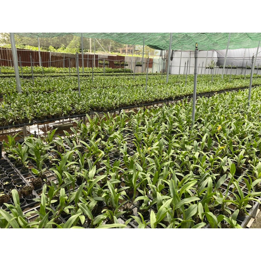 Cây hoa lan giống Dendrobium, cây ra vườn được 04 tháng, trồng bằng giá thể xơ dừa đã xử lý.