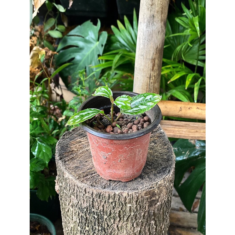 Cây giống Pilea cadierei Aluminum (Hổ Nhĩ Trắng Aluminum, Mao Đài Trổ Aluminum, Cỏ Gấm) chậu nhựa 8cm