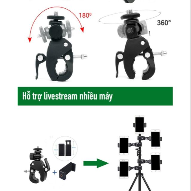 Tay giữ điện thoại - máy ảnh - camera kẹp chân tripod - xe máy - đạp - giá đỡ - giúp livestream nhiều máy một lúc