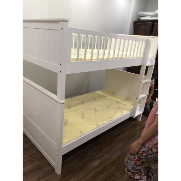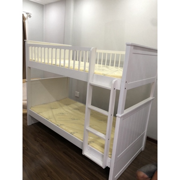 kích thước: tầng dưới 1mx2m, tầng trên 1mx2m, cao 1m75Kích thước lọt lòng nệm: 1m x 1m95 (cả trên dưới)