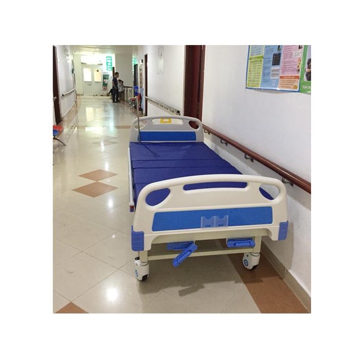 Giường được cấu tạo bằng thép tấm sơn tĩnh điện cho tải trọng lên tới 280kg, có 2 thanh chắn hai bên giúp nâng lên hạ xuống dễ dàng. Hai đầu giường làm bằng nhựa ABS có thể tháo lắp dễ dàng và không bị ăn mòn bởi hóa chất y tế.
