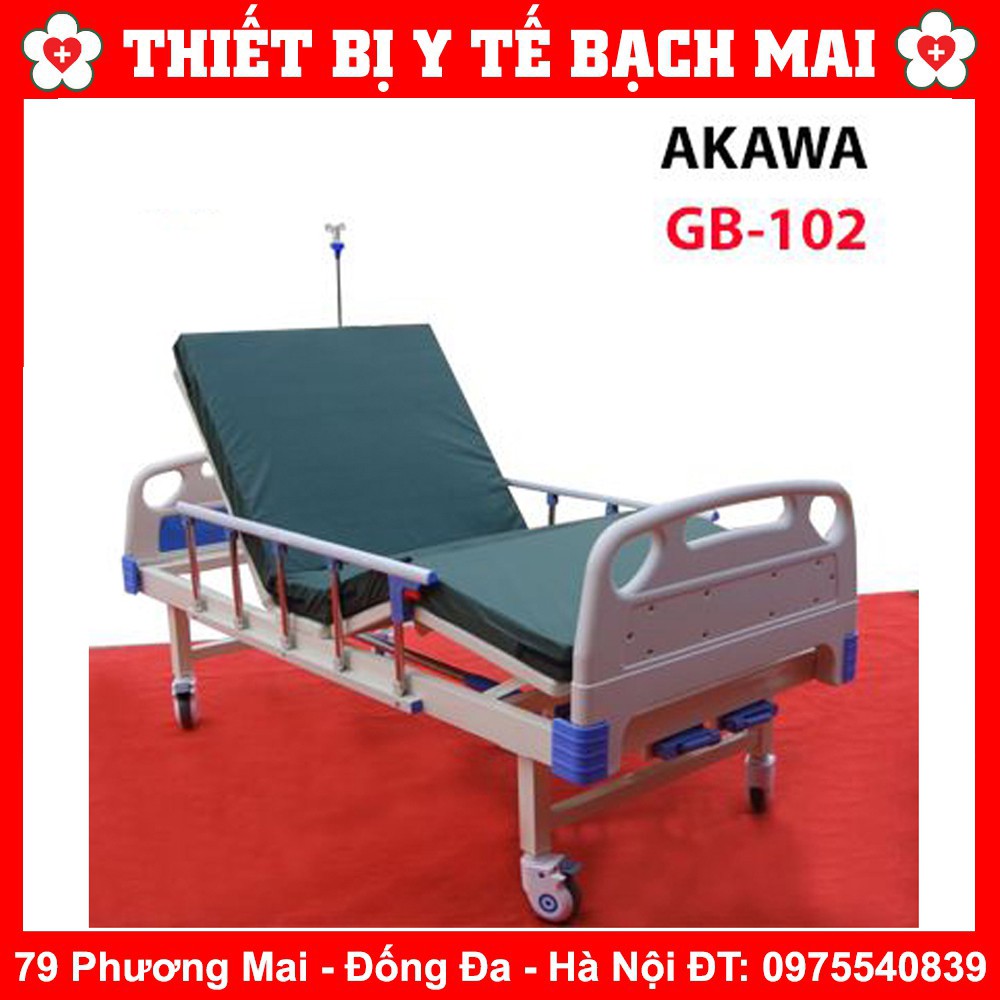 Giường bệnh nhân Akawa GB-102 có 2 tay quay thực hiện các chức năng: Nâng đầu và nâng chân. Hãng sản xuất: Akawa công nghệ Nhật Bản, sản xuất tại Trung Quốc Nhập khẩu và phân phối độc quyền: Giường có bàn ăn rất tiện dụng cho người lớn tuổi hay người đang bị chấn thương.Giường bệnh nhân Akawa GB-102 có 2 tay quay thực hiện các chức năng: Nâng đầu và nâng chân.