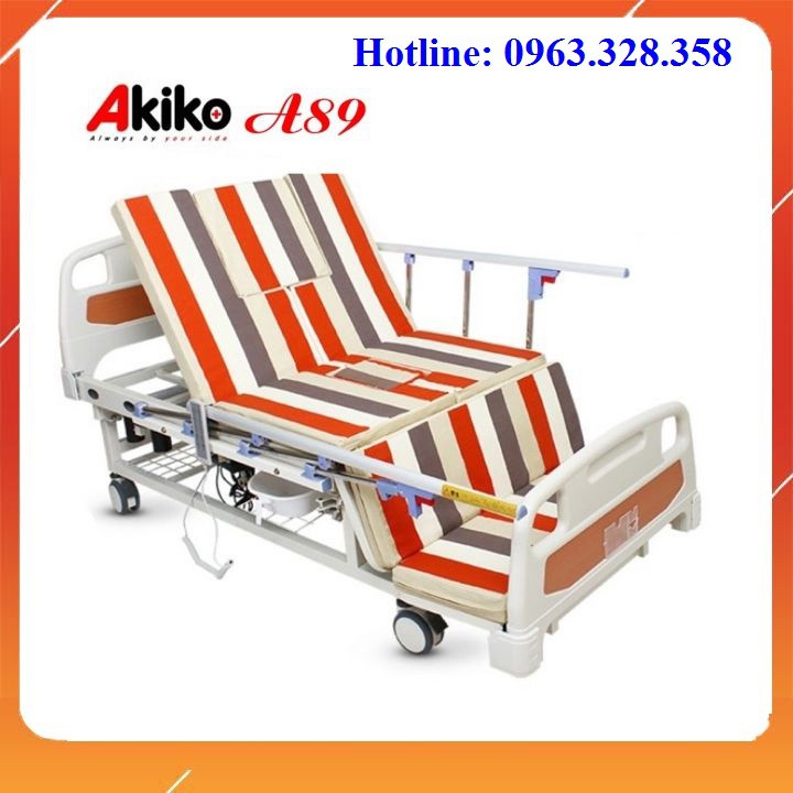 - Ngoài ra giường điện y tế AKIKO A89 còn có chức năng nâng hạ bô vệ sinh một cách đơn giản, giúp bệnh nhân đi vệ sinh một cách dễ dàng với cả tư thế ngồi và tư thế nằm.