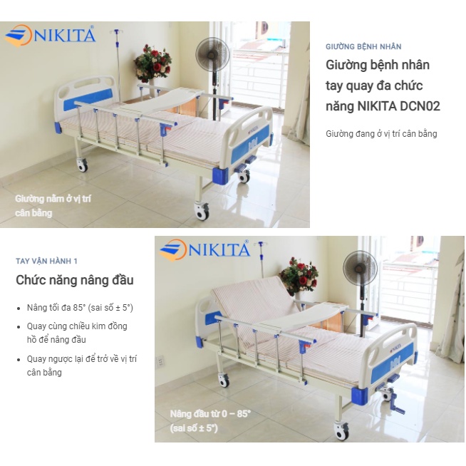 Giường bệnh Y tế ba chức năng, nâng đầu, nâng chân, tích hợp bô vệ sinh - chính hãng NIKITA DCN03Giường y tế đa chức năng NIKITA DCN03 được sản xuất trên dây chuyền công nghệ hiện đại của Nhật Bản. Giường được trang bị phổ biến ở các cơ sở y tế. Thiết kế đáp ứng nhu cầu chăm sóc bệnh nhân với chất liệu bền và an toàn, kiểu dáng sang trọng.