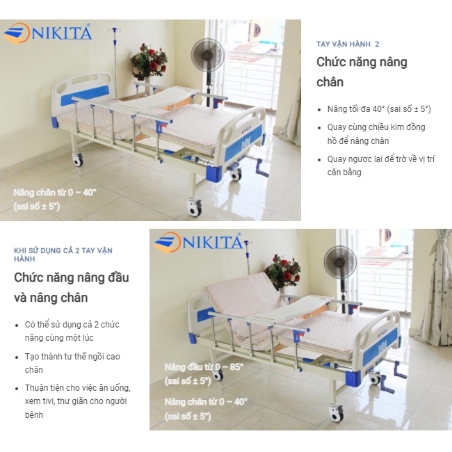 Giới thiệu Giường bệnh Y tế ba chức năng, nâng đầu, nâng chân, tích hợp bô vệ sinh - chính hãng NIKITA DCN03