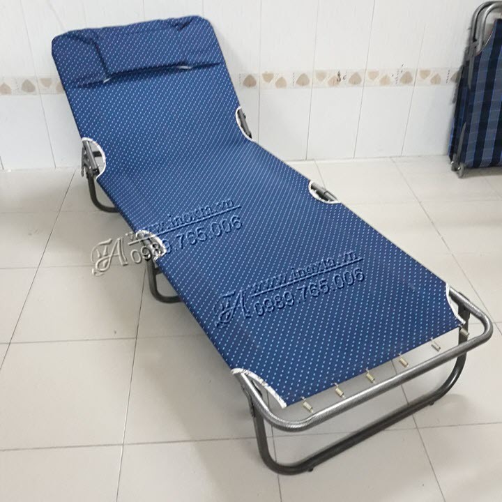 Khung ghế là sắt được sơn tĩnh điện nên khó bông tróc, chất liệu vải cao cấp mềm tạo cảm giác dễ chịu thoáng mát khi nằm, đầu giường có nhiều nấc có thể tăng chỉnh thành ghế tựa tiện cho việc ngả lưng thư giãn xem tivi, hóng mát ban công, sân vườn, đọc sách báo... ( xem hình chụp thật)