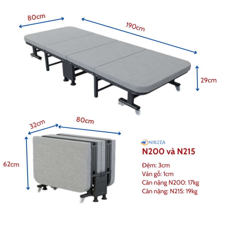 - Kích thước sử dụng N200: 190x80x29cm (Dài x Rộng x Cao)