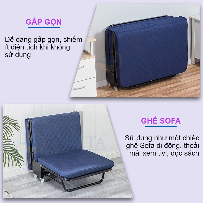 Nhà cửa & Đời sống > Nội thất > Giường, khung giường || Giường gấp ba khúc NIKITA GB90 rộng 90cm màu xanhCòn hàng
