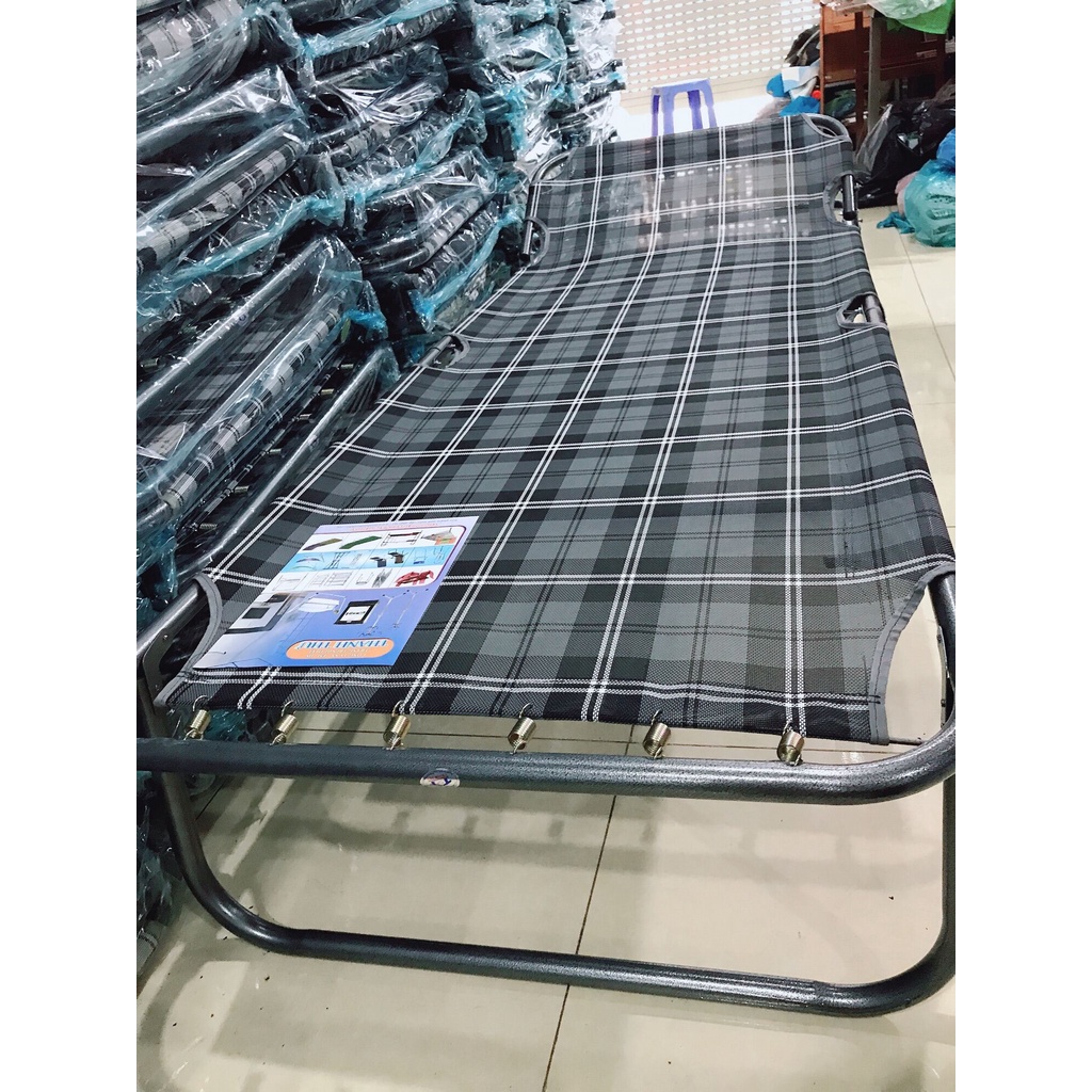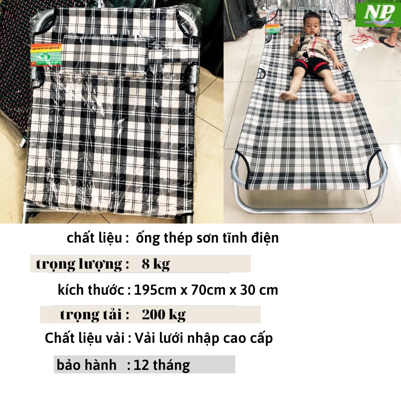 Giường xếp có kích thước rộng 70cm dài 190cm cao 30cm được làm bằng Thép 100% sơn tĩnh điện không rỉ sét, thiết kế chắc chắn, có thể xếp gọn dễ dàng, tính cơ động cao.