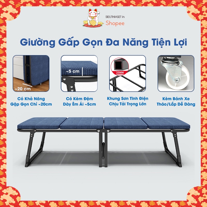 Giường Gấp Văn Phòng Đa Năng Loại Đơn Sẵn Đệm Bảo Hành 12 Tháng Khả Năng Chịu Lực Cao Rộng 63 cm Gấp Gọn Chỉ Dày 20 cm