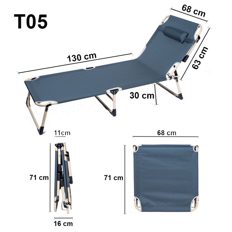 ✔️ Khung bằng thép sơn tĩnh điện; có thể nằm thẳng hoặc nâng đầu như ghế tựa với 3 độ cao khác nhau.