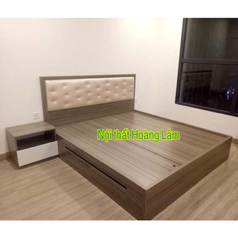 Giường gỗ công nghiệp có tính thẩm mỹ cao với nhiều màu sắc khác nhau, có độ bóng đẹp nên giường không bị cũ đi, đa dạng các kiểu dáng vân gỗ giả đáp ứng được nhu cầu của nhiều khách hàng.