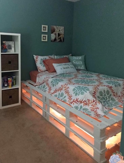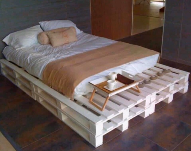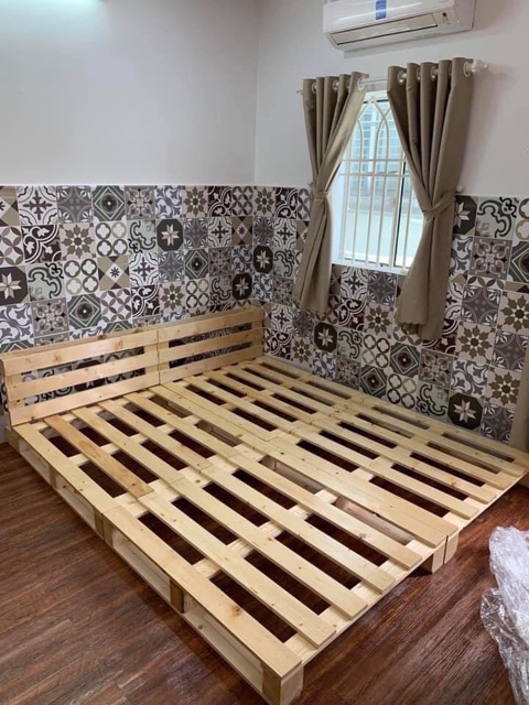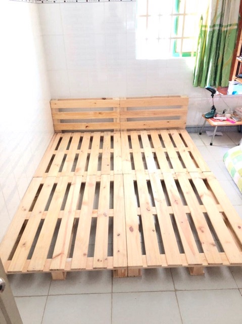 Giường gỗ màu tự nhiên pallet mới đẹp sơn màu trắng giá rẻ mà chất lượng