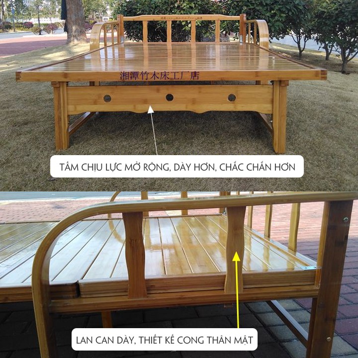 Giới thiệu Giường gỗ sofa loại giường gấp thành ghế làm bằng tre làm chỗ ngủ trưa ghế ngồi - tặng 1 ga trải giường