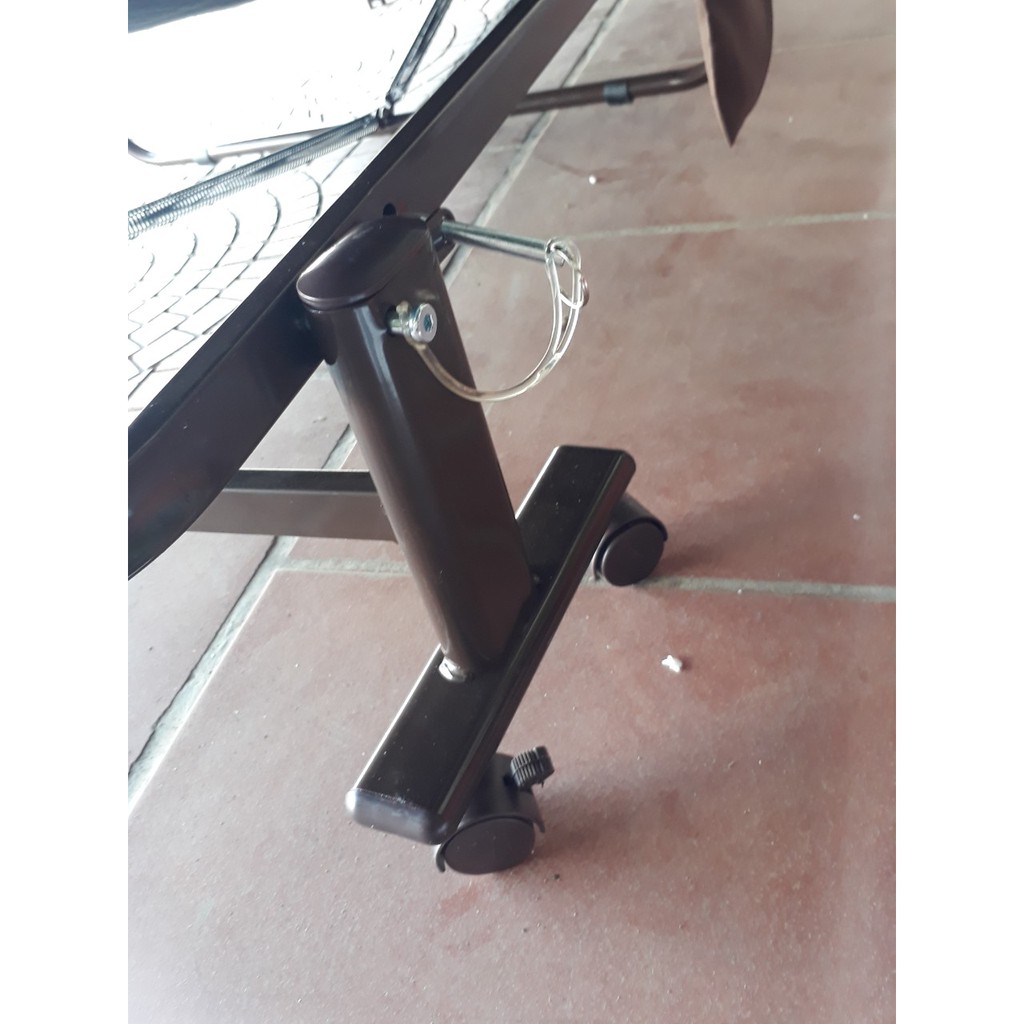 • Chân giường được lắp bánh xe để khi cần di chuyển chúng ta có thể di chuyển một cách dễ dàng và nhẹ nhàng. Và khi không cần di chuyển nữa thì chúng ta có thể khóa chốt an toàn xe lại.