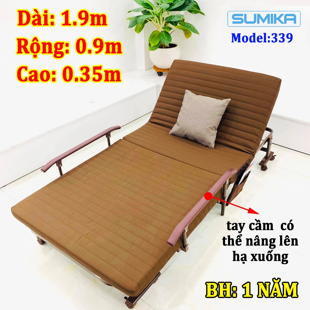 Giường nệm gấp xếp gọn nâng đầu Hàn Quốc SUMIKA 339 Tặng kèm gối (rộng 90cm,dài 192cm,cao 35cm, tải trọng 300kg)