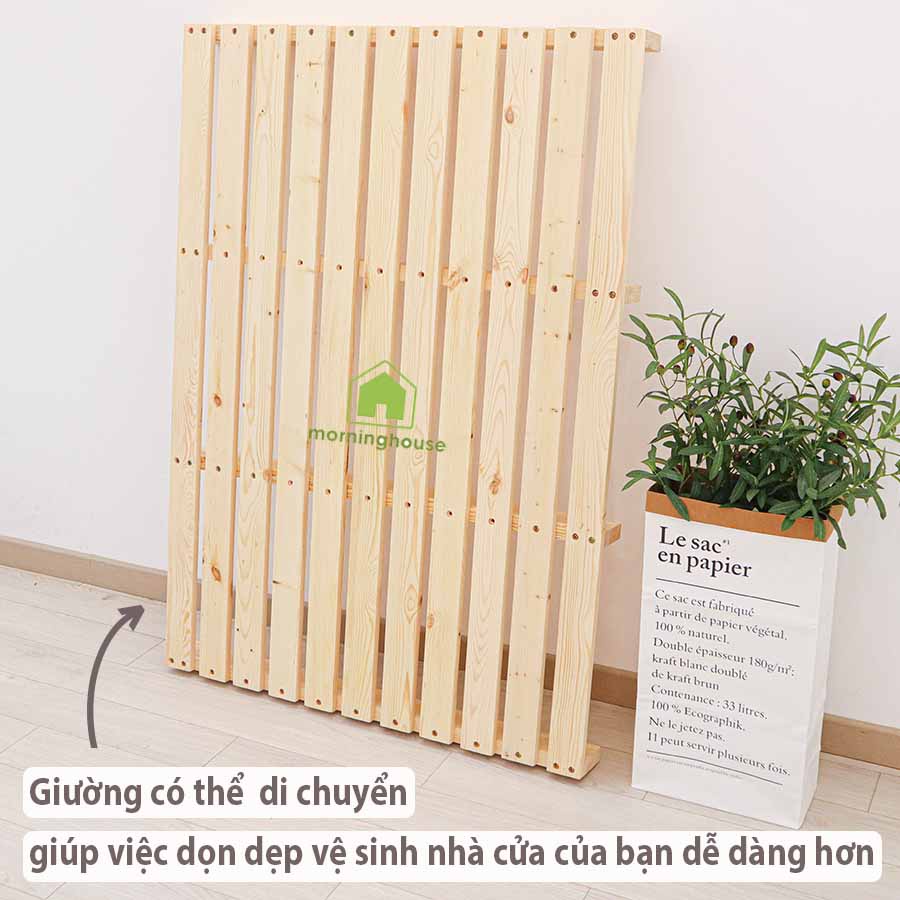 Thông tin sản phẩm Giường Pallet Gấp Gọn Morning House🔷Chất liệu: Gỗ thông Mỹ nhập khẩu với nhiều đường vân gỗ rất đẹp,