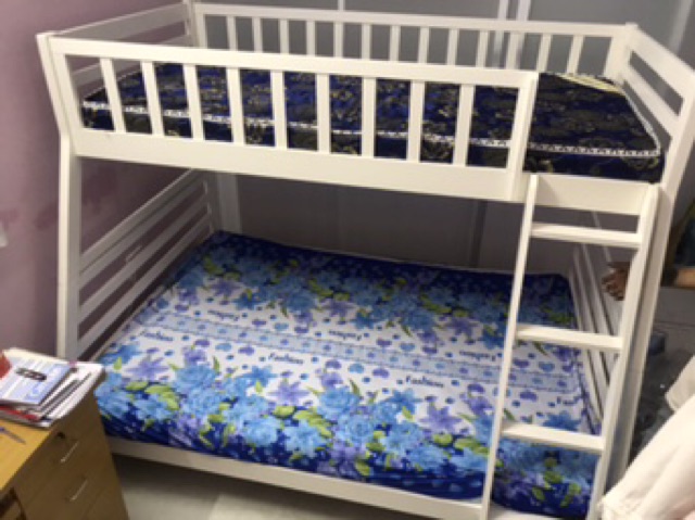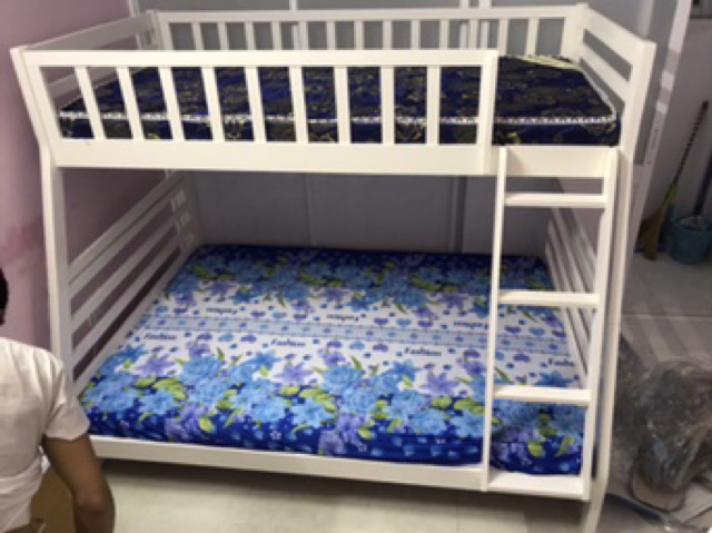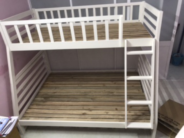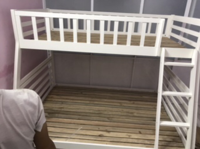 Kích thước: trên 1m x 2m, dưới 1m4 x 2mGiường tầng gỗ thông xuất khẩu bao chắc chắn