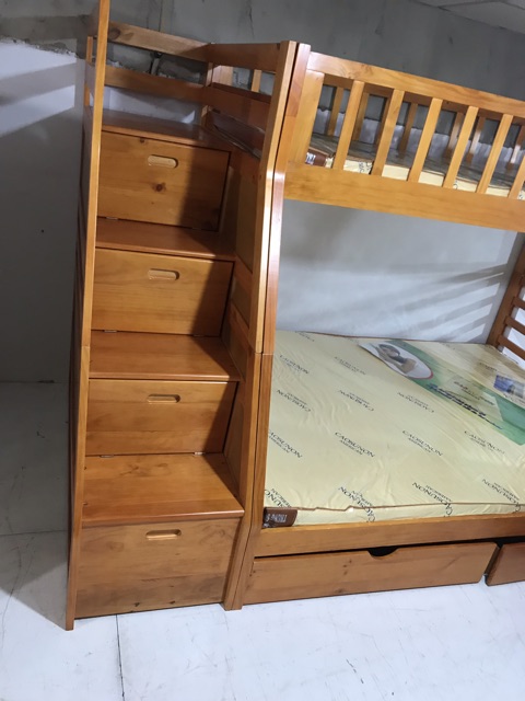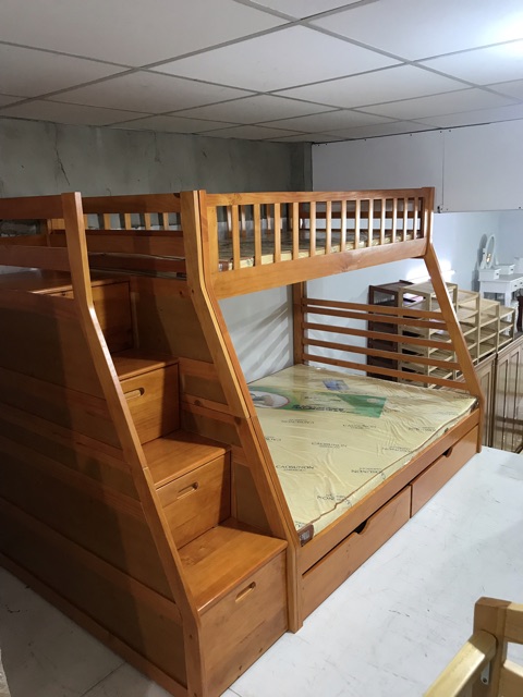 Kích thước: trên 1m x 2m dưới 1m4 x 2mGiường này có cầu thang hộp nên dài đến 2m60