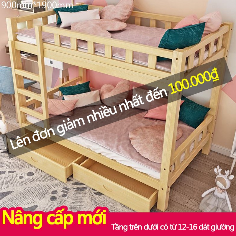 Giường tầng gỗ mộc giường đôi cao thấp trẻ em người lớn căn hộ nhỏ, ký túc xá, phòng trọgiường tầng gỗ mộc chắc chắn không chất gây hại, kiểu dáng đơn giản thanh lịch phù hợp với nhiều phong cách nội thất