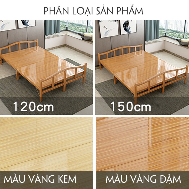 Nhà cửa & Đời sống > Nội thất > Giường, khung giường || Giường tre gấp gọn 190x150cm màu gỗ, giường nằm ngủ đa năng nằm thư giãnCòn hàng