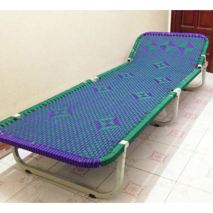 Giường gấp khung vuông 21 với kết cấu vững chắc kích thước lớn 180x67x23cm, nặng 5kg với khung giường vững chắc bằng ống thép vuông, dây đan bằng sợi Elen cao cấp, đàn hồi tốt nhưng không dão, và bai giãn, thoáng mát nằm êm ái. Sản phẩm rất nhẹ và thuận tiện cho việc mang đi xa.