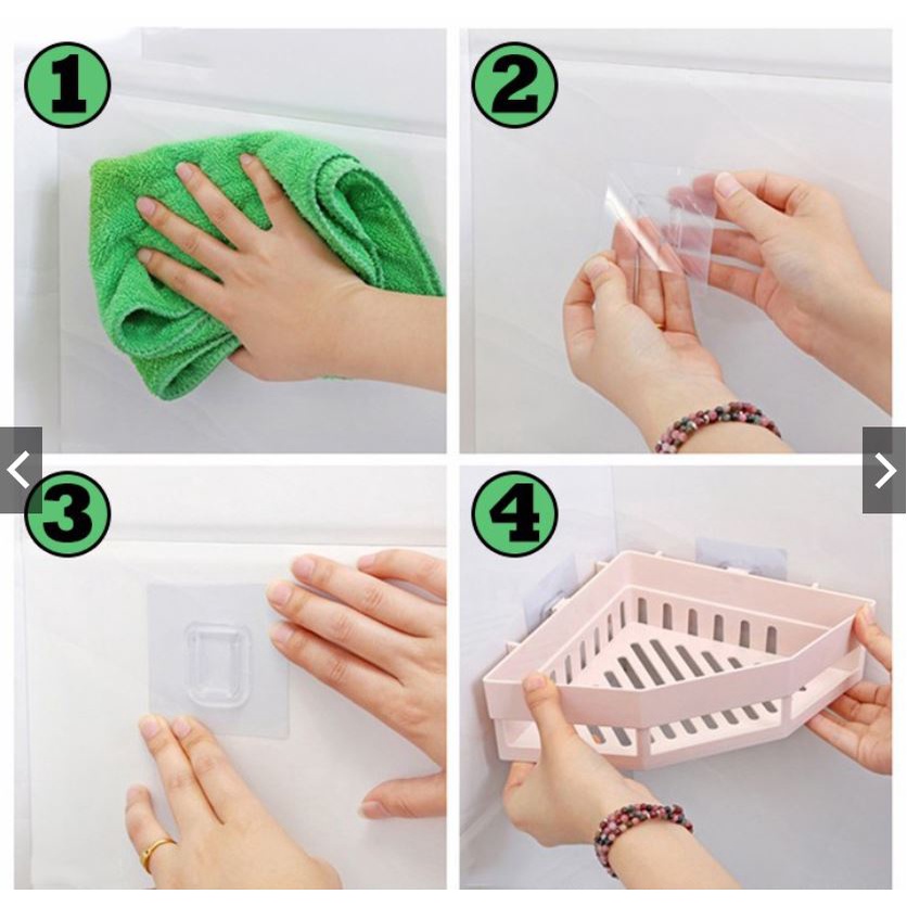 Quý khách lưu ý đọc kỹ hướng dẫn sử dụng trên hình, thao tác dán kệ đúng để miếng dán dính chắc.