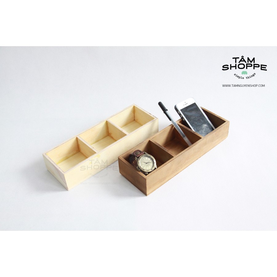 [GỖ DÀY ĐẸP] Khay gỗ nhỏ để bàn 3 ngăn