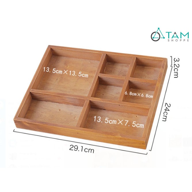 Giới thiệu [GỖ DÀY ĐẸP] Khay gỗ trang trí chữ nhật chia 7 ngăn nhỏ số 15