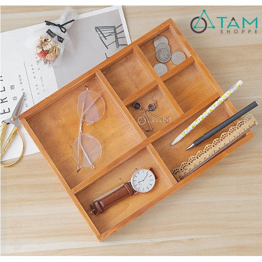 + Khay gỗ chia nhiều ngăn nhỏ, kích cỡ các ô khác nhau