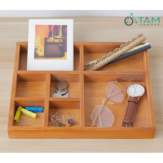 Nhà cửa & Đời sống > Nội thất > Tủ bếp || [GỖ DÀY ĐẸP] Khay gỗ trang trí chữ nhật chia 7 ngăn nhỏ số 15Còn hàng
