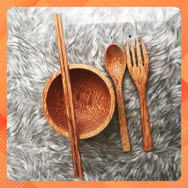 Nhà cửa & Đời sống > Bộ đồ bàn ăn > Bộ dao kéo || Bộ gỗ dừa cao cấp - Chén gỗ dừa + Muỗng nĩa đũaCòn hàng