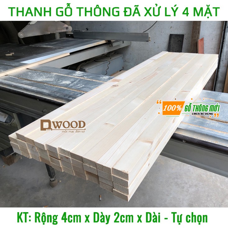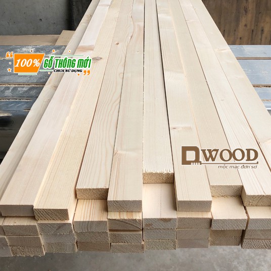 Thanh gỗ thông dài KT 2x4cm đã xử lý 4 mặt - Chiều dài tự chọn Dwood