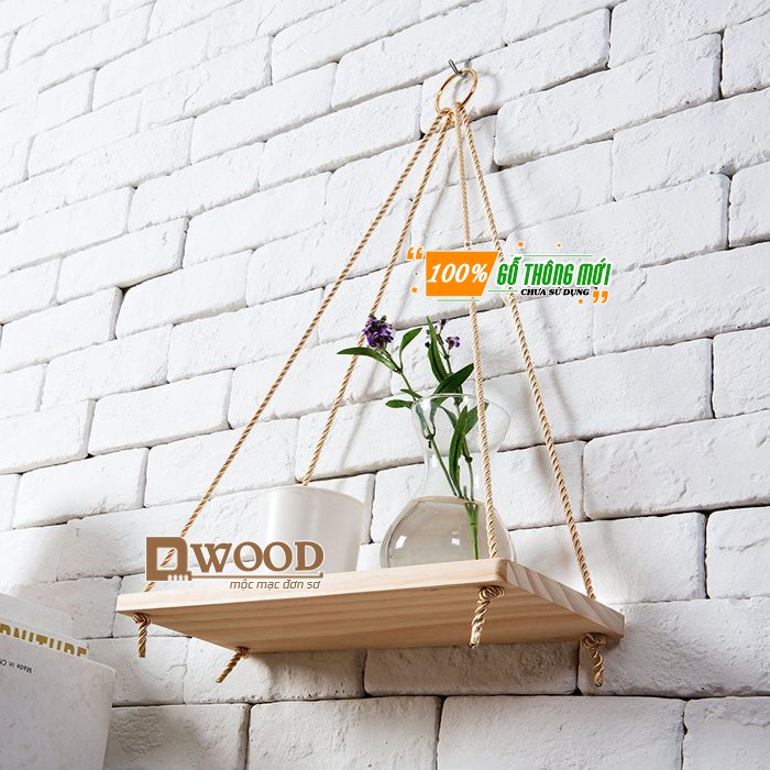 Sản phẩm bao gồm 1 tấm gỗ đã khoan lỗ, chưa bao gồm dây. Có thể mua kèm dây thừng gai trong shop để treo kệ.