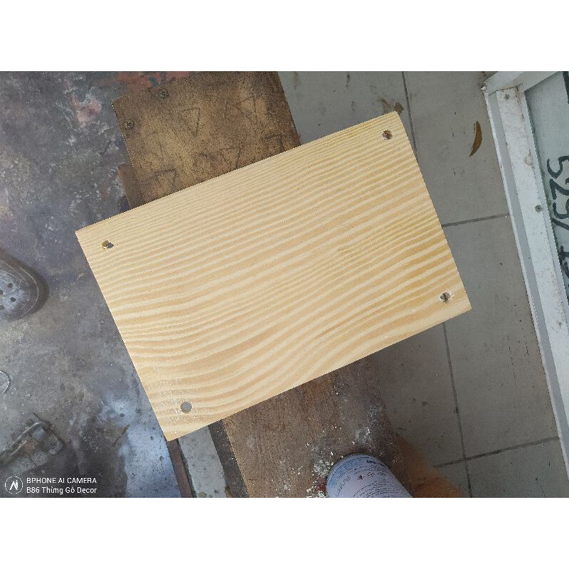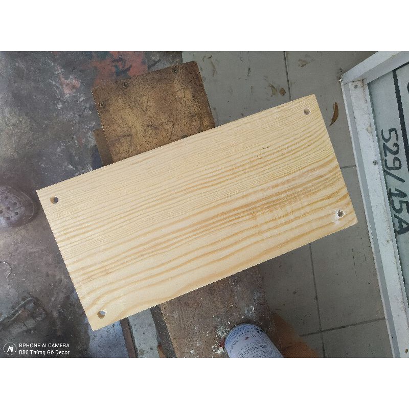 Tấm gỗ được khoan 4 lỗ để treo