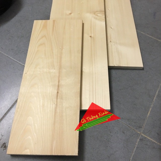 Tấm gỗ thông mặt lớn rộng 23cm, dài 50cm, dày 2cm dùng làm mặt bàn, mặt ghế, kệ ốp tường...