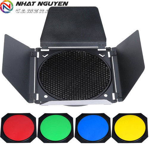 Godox Barn Door + Godox lưới tổ ong + 04 Gel Màu Godox - Godox Barndoor Kit