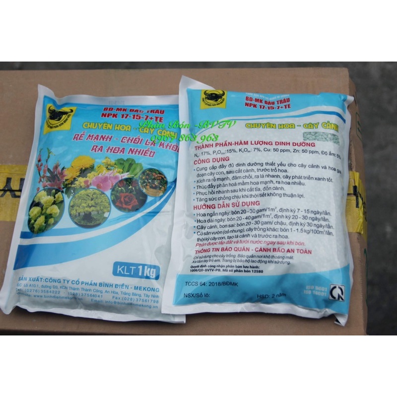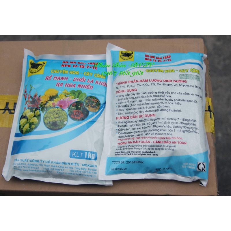 Giới thiệu Gói 1 ký, NPK Tan Chậm Đầu Trâu 17-15-7+TE – Rễ mạnh, chồi lá khỏe, ra hoa nhiều