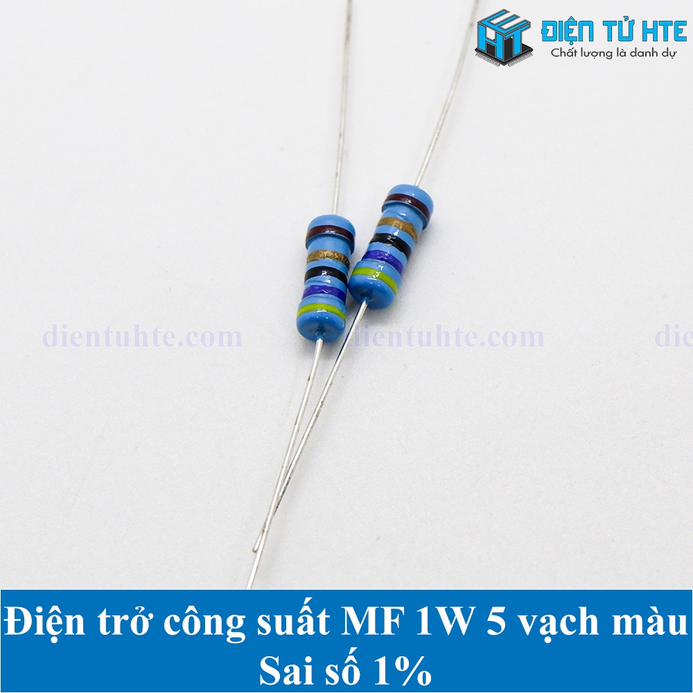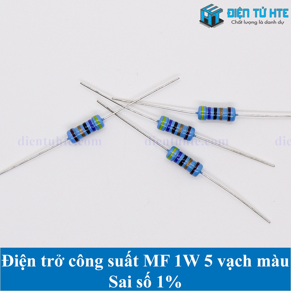Điện trở MF 1% 1W 5 vạch màuĐiện trở chất lượng với công suất 1W được sử dụng trong các mạch công suất, sai số thấp 1%