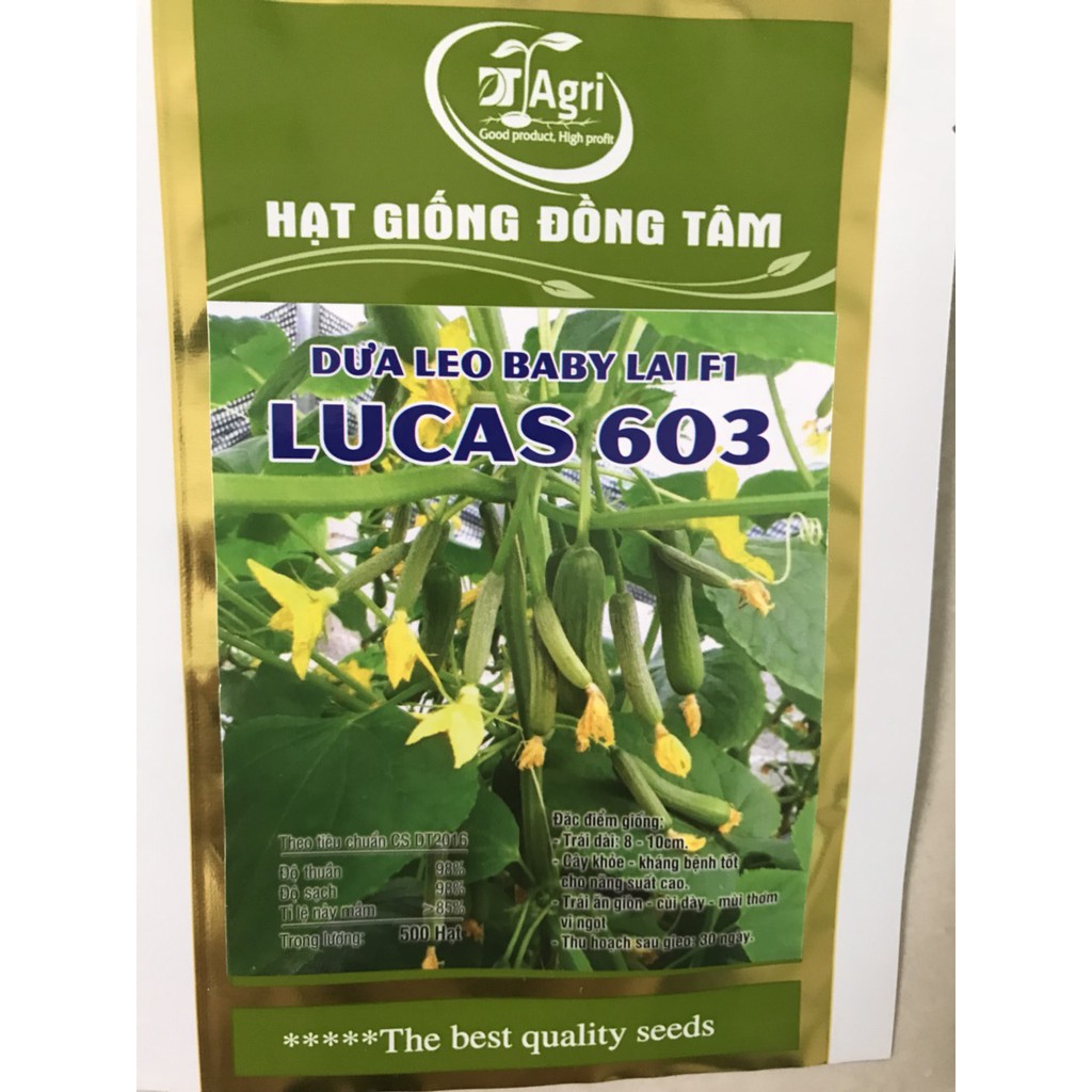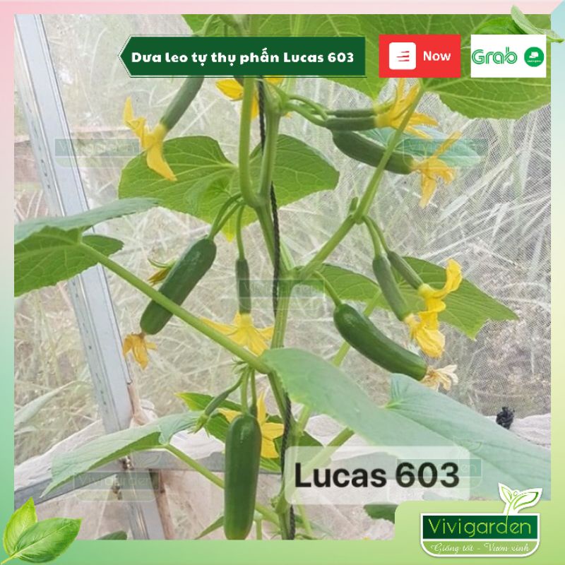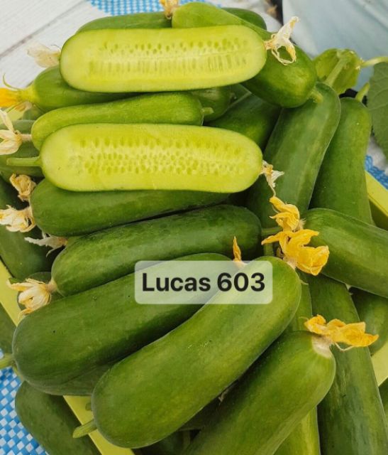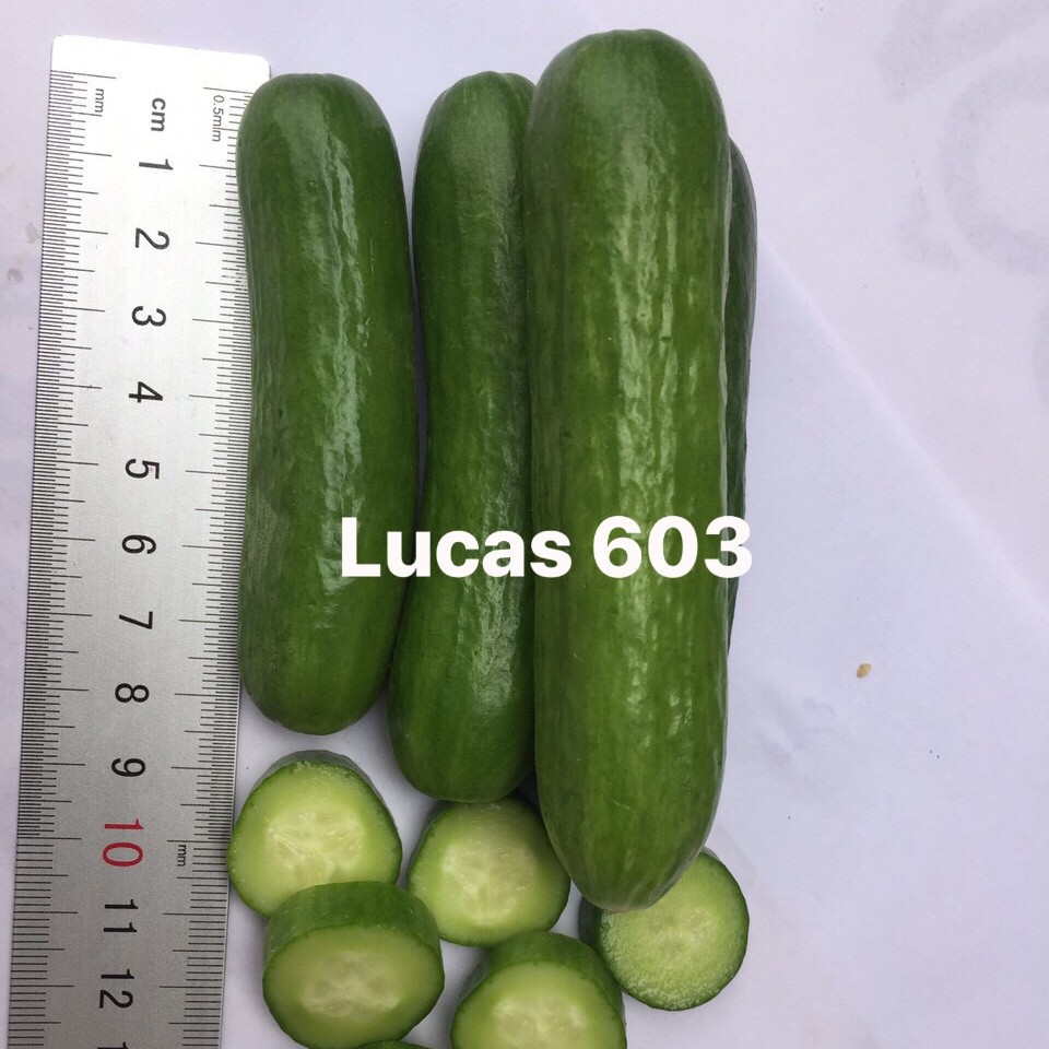 - Lucas 603 là dòng dưa leo tự thụ phấn, trái xanh giòn, ngọt thơm, bóng đẹp. Khả năng chịu nhiệt rất cao có thể đến 45 độ.