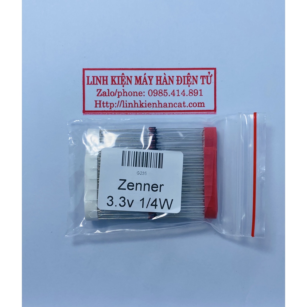 MÔ TẢ SẢN PHẨM : Diot Zenner 1/4W 3.3V- Bộ túi 100 Con Diot Zenner 1/4W 3.3V