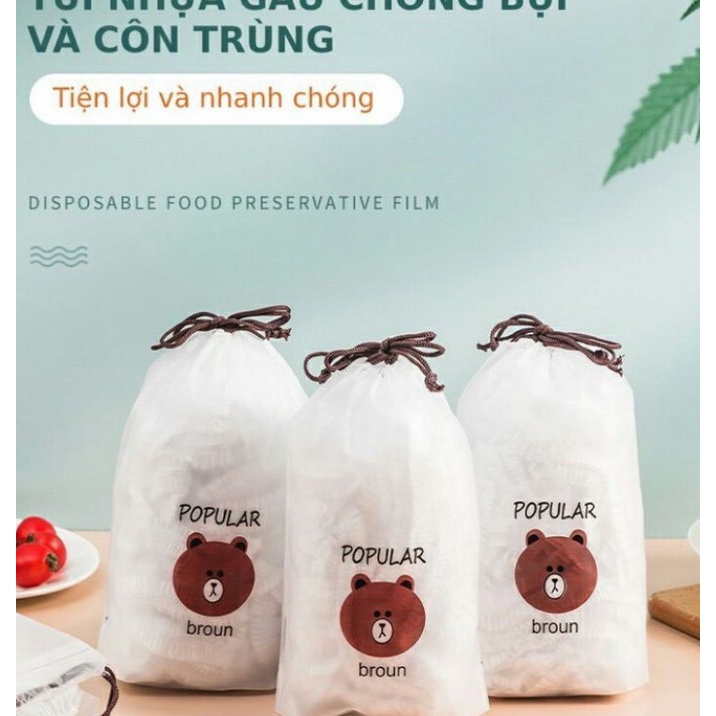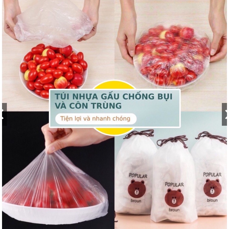 Gói 100c Màng Bọc Thực Phẩm Có Chun Co Dãn Tái Sử Dụng Kèm Túi GấuTúi bọc thực phẩm nilong co giãn phiên bản mới