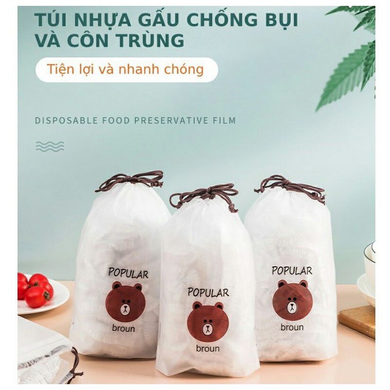 Gói 100c Màng Bọc Thực Phẩm Có Chun Co Dãn Tái Sử Dụng Kèm Túi Gấu